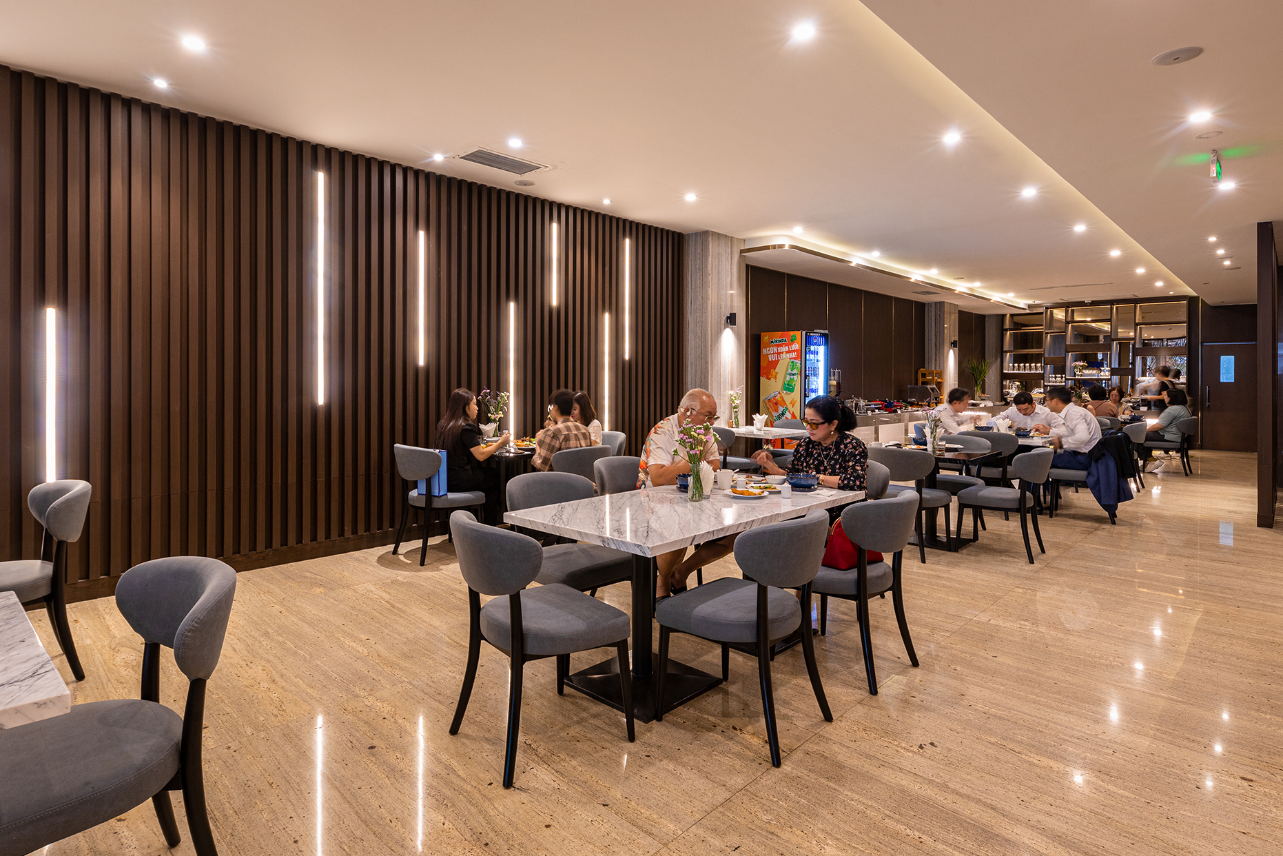 028 3620 0182Nhà hàng của khách sạn được thiết kế rộng rãi, thoáng đãng, tạo không gian thoải mái để tận hưởng bữa ăn. Đặc biệt, bữa sáng buffet đa dạng, phong phú, thay đổi theo ngày, mang đến trải nghiệm ẩm thực hấp dẫn với các món ăn được tuyển chọn kỹ lưỡng. Đội ngũ nhân viên phục vụ tận tâm, sẵn sàng đáp ứng mọi nhu cầu của quý khách, từ một bữa sáng nhẹ nhàng đến một khởi đầu ngày mới đầy năng lượng.